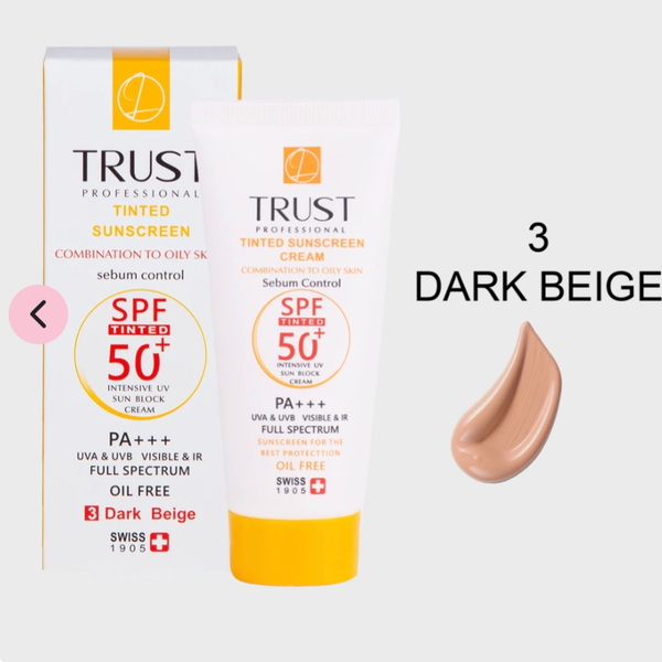 کرم ضد آفتاب رنگی کنترل چربی تراست با رنگ بژ تیره، انتخابی حرفهای و کامل برای افرادی است که بهدنبال محافظت بالا، کنترل چربی و پوشش یکنواخت پوست در یک محصول هستند.